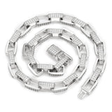 The Nocta Vince 11MM Rectangular-Link Open-Frame Chain is all about sharp lines and contemporary style. Built with elongated rectangular links, this chain features an open-frame structure that gives it a bold, architectural look while keeping it lightweight and comfortable. Select links are accented with handset CZ stones, adding a clean, refined shine that elevates the entire design.