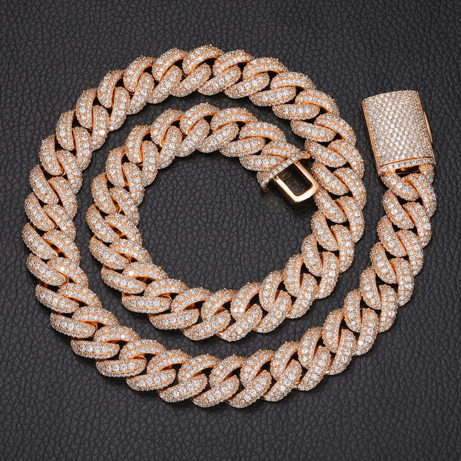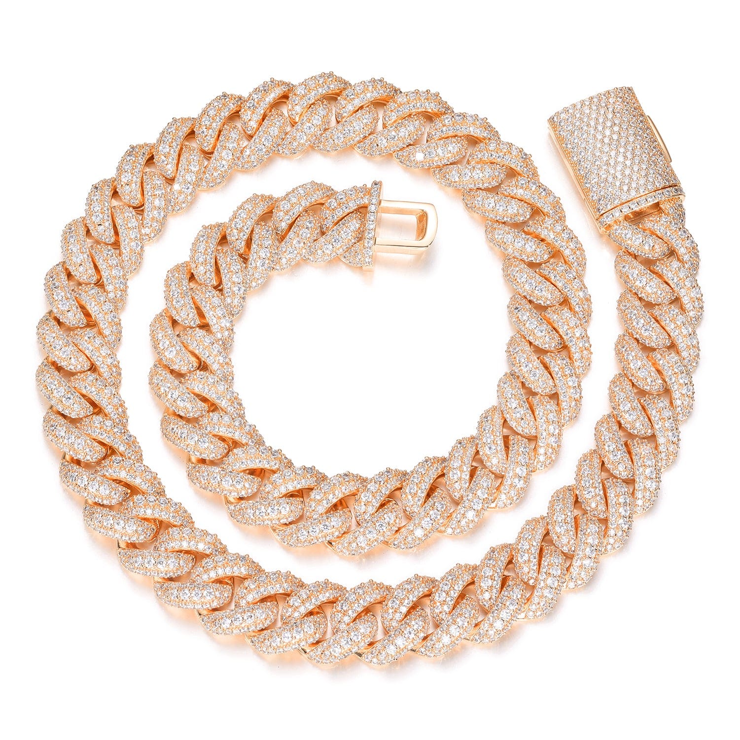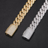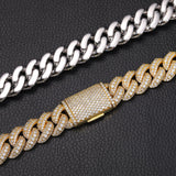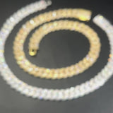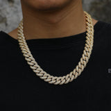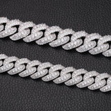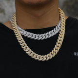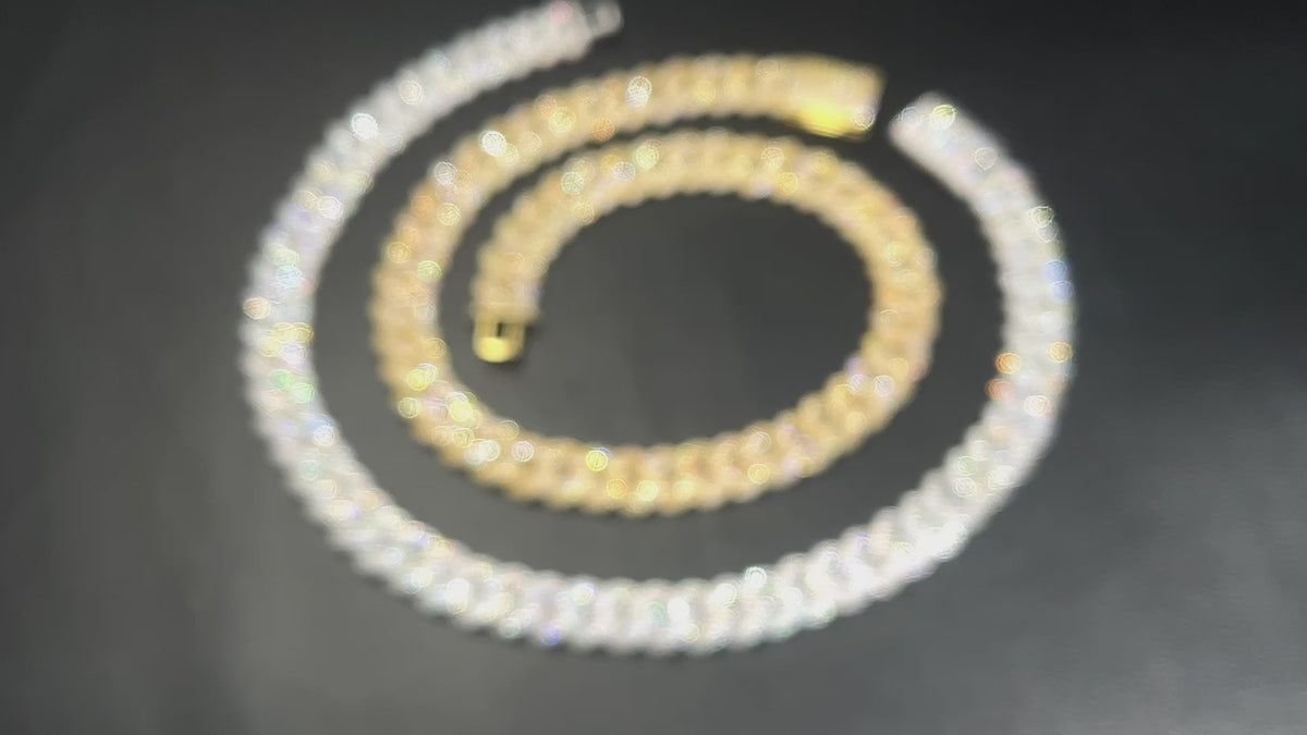 The Nocta Vince 15MM Miami Pave-Set Cuban Chain delivers classic Cuban style with a boosted shine. Each thick 15MM link is handset with a double row of pavé CZ stones, giving the chain a clean, uniform sparkle from every angle. Available in both gold and silver, this piece hits hard with a bold profile while staying comfortable for everyday wear.