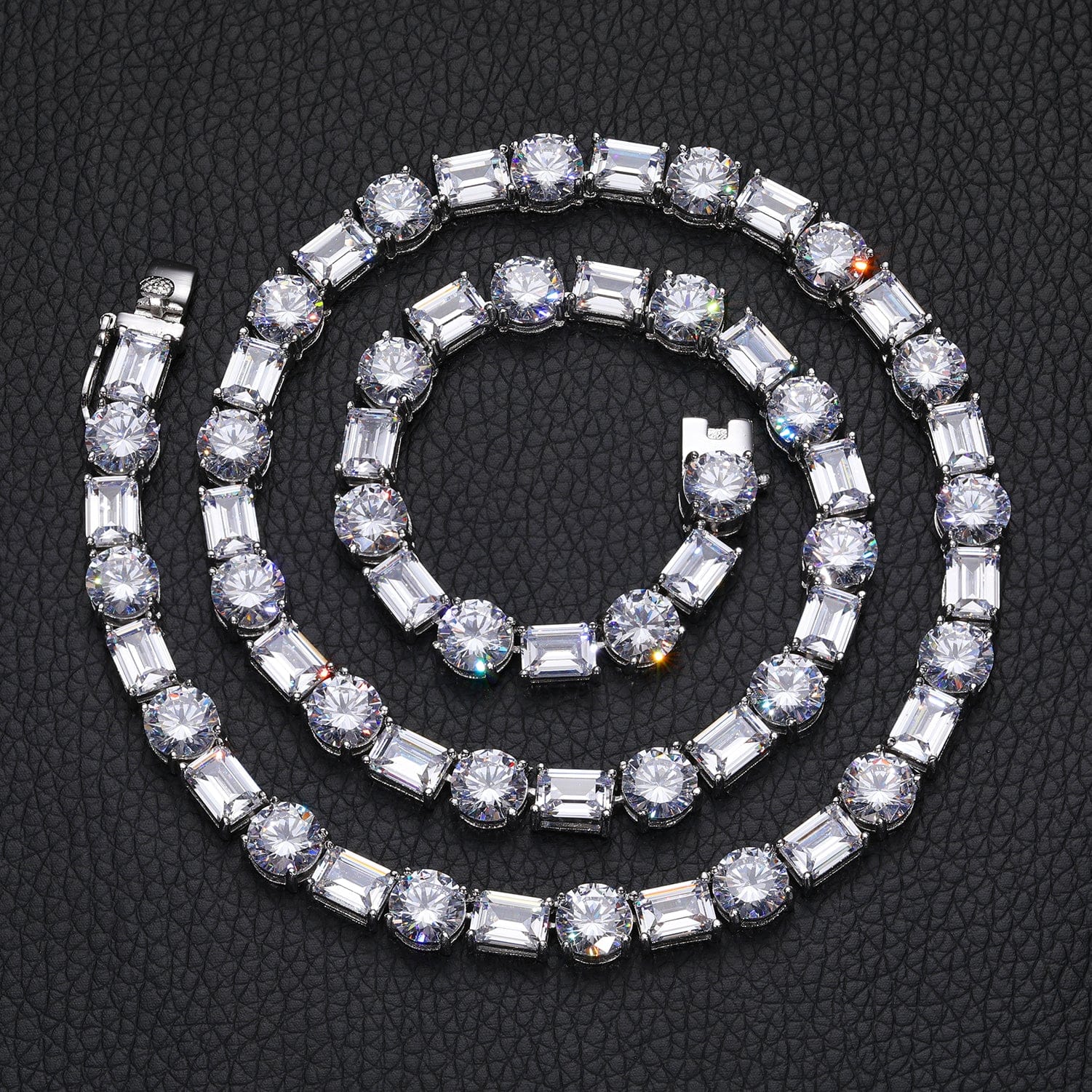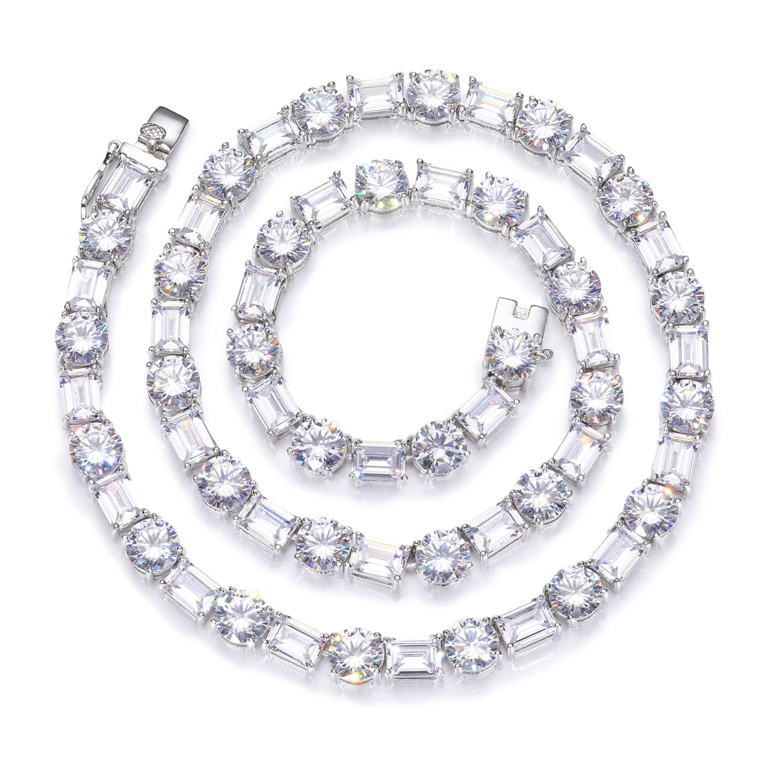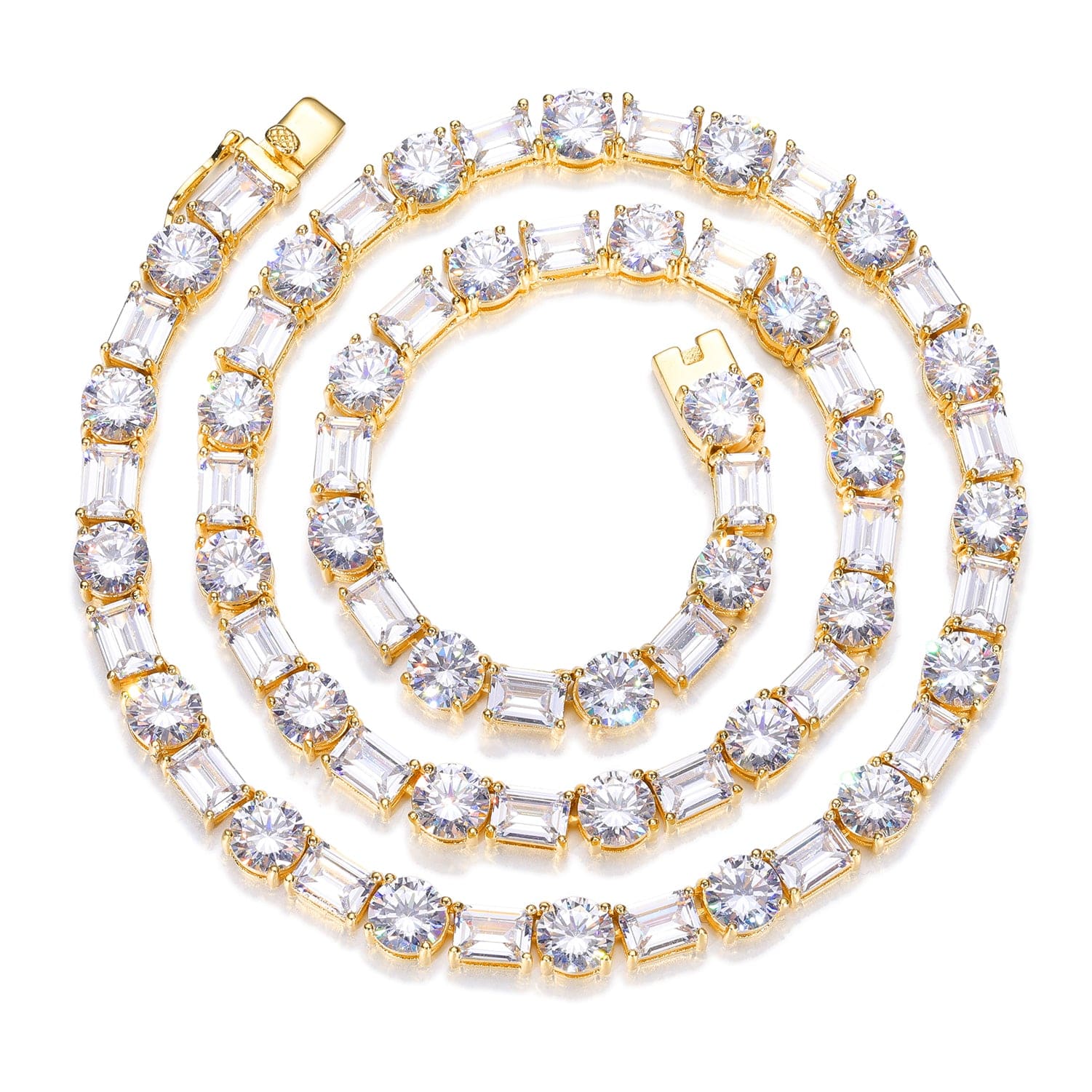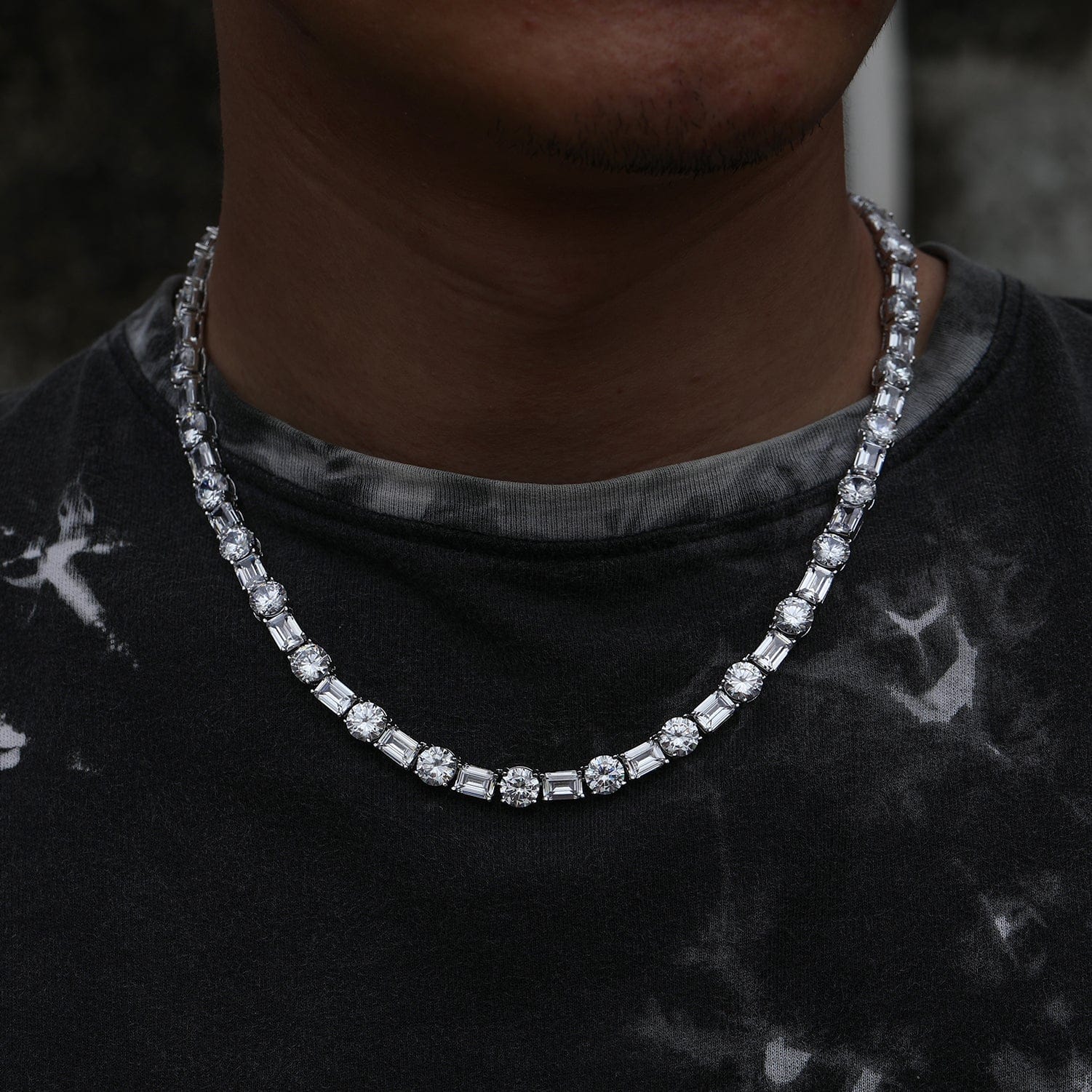 The Nocta Vince Luminous 18MM Hybrid Stone Tennis Chain brings together two luxury cuts in one statement piece. Each link blends brilliant round stones with sleek baguette-cut stones, creating a high-shine hybrid design that catches light from all angles. At a bold 18MM width, this chain delivers a powerful profile while maintaining a polished, elegant finish.