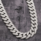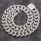The Nocta Vince 20MM Aureate Cuban Chain brings a powerful mix of bold design and refined shine. Built with tight-linked rounded Cuban links, this chain delivers a smooth, heavy presence that instantly elevates any outfit. Each link is fully coated in triple-row micro pavé 5A+ CZ stones, giving it a deep, layered sparkle that catches light effortlessly.