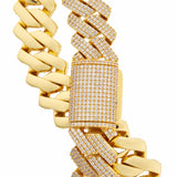 The Nocta Vince 25MM Haute Cuban Chain is built for those who want presence, power, and premium shine in every step. This heavyweight showpiece features a bold 25MM flat-link profile, giving it a wide, dominant look that instantly elevates your entire fit. Each open link is meticulously handset with full micro pavé 5A CZ stones, covering the chain from every angle for an intense, high-luxury sparkle normally seen only in custom pieces.