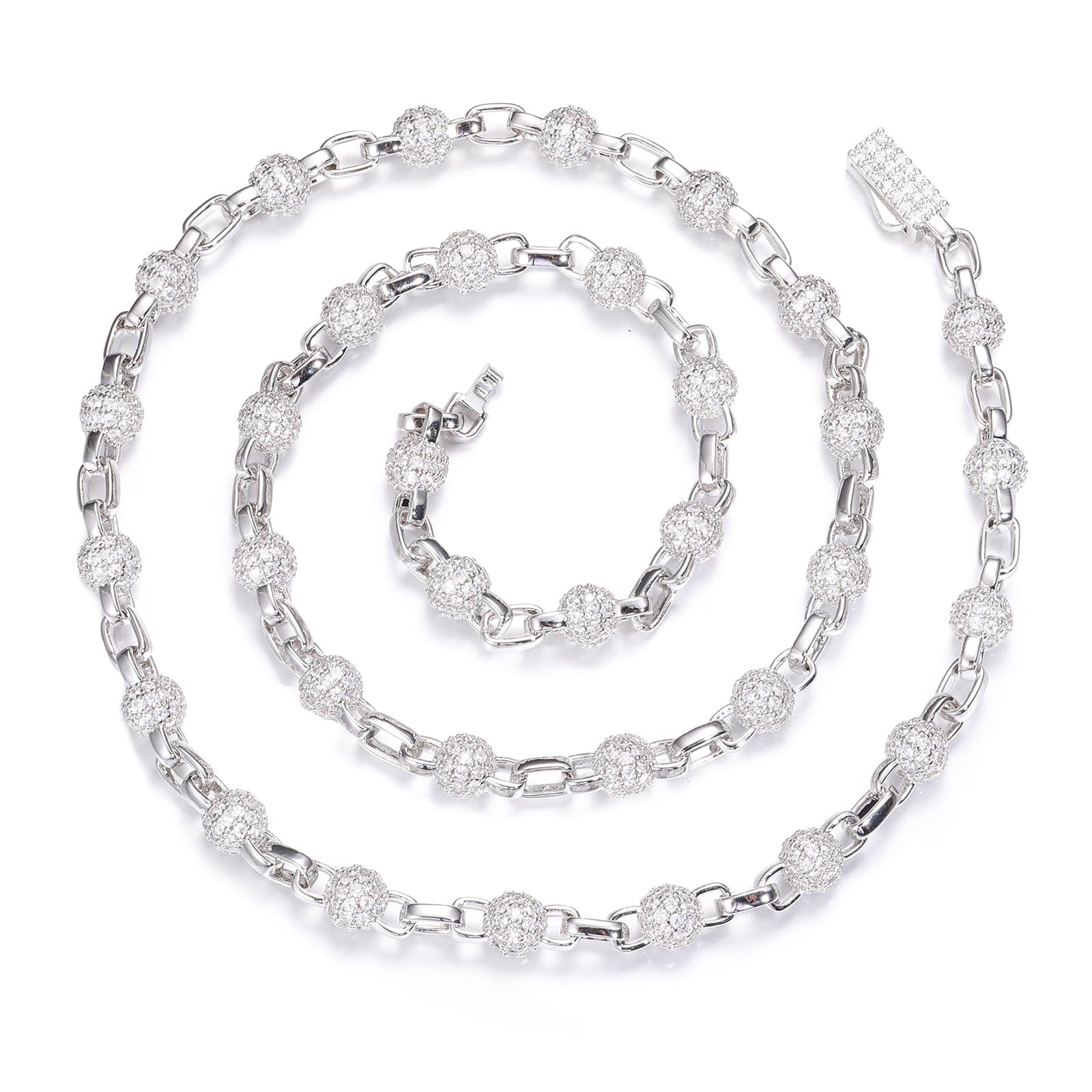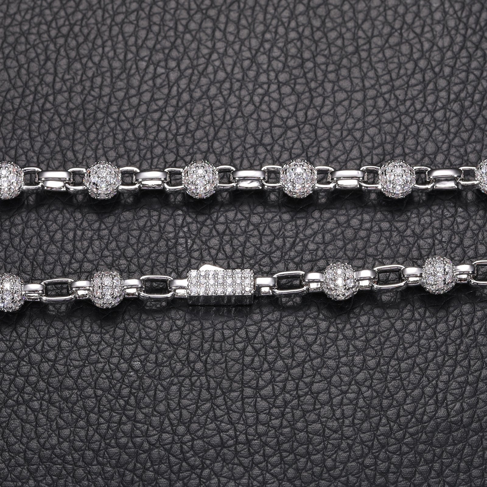 The Nocta Vince 6MM Sferico 6MM Bead Chain brings a unique blend of luxury and modern design. Featuring alternating rounded links and fully iced bead elements, this chain delivers a clean, stylish shine that stands out without being too heavy. Each bead is micro-pavé set with high-quality CZ stones for maximum sparkle, while the polished silver-tone links give it a sleek, premium finish.