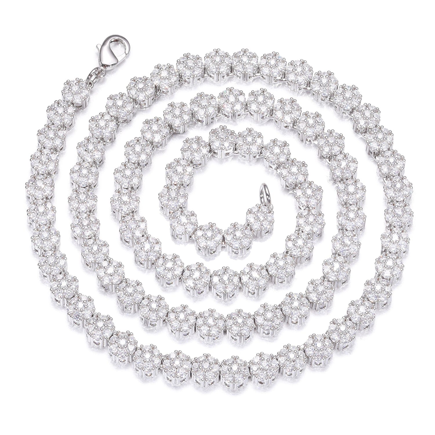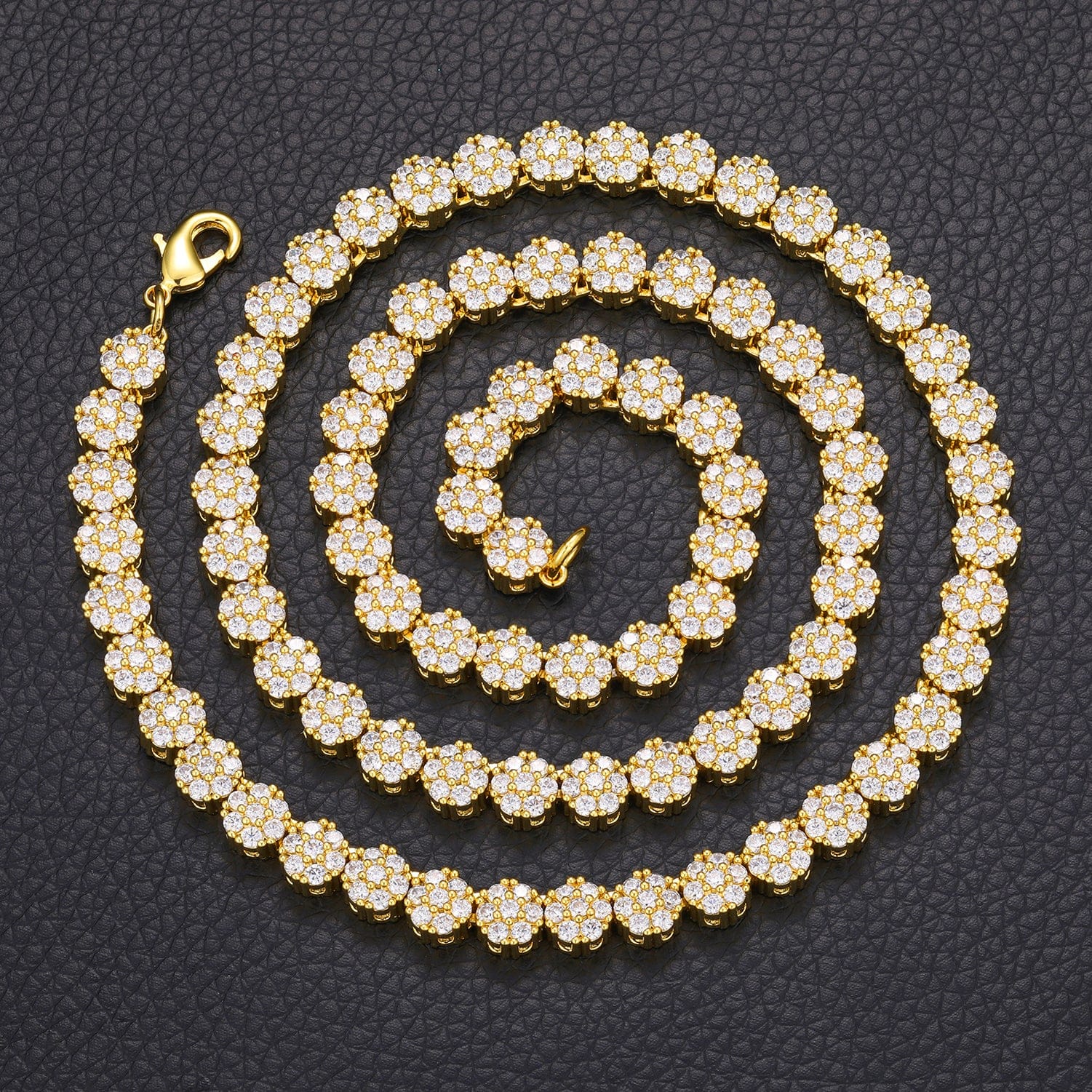 The Nocta Vince 8MM Flower Cluster Tennis Chain brings a refined, jewelry-inspired sparkle with its signature floral cluster design. Each link features a raised cluster of stones arranged in a flower pattern, creating a soft, elegant shine with beautiful depth. At 8MM, it offers a noticeable profile while maintaining a graceful, lightweight feel.