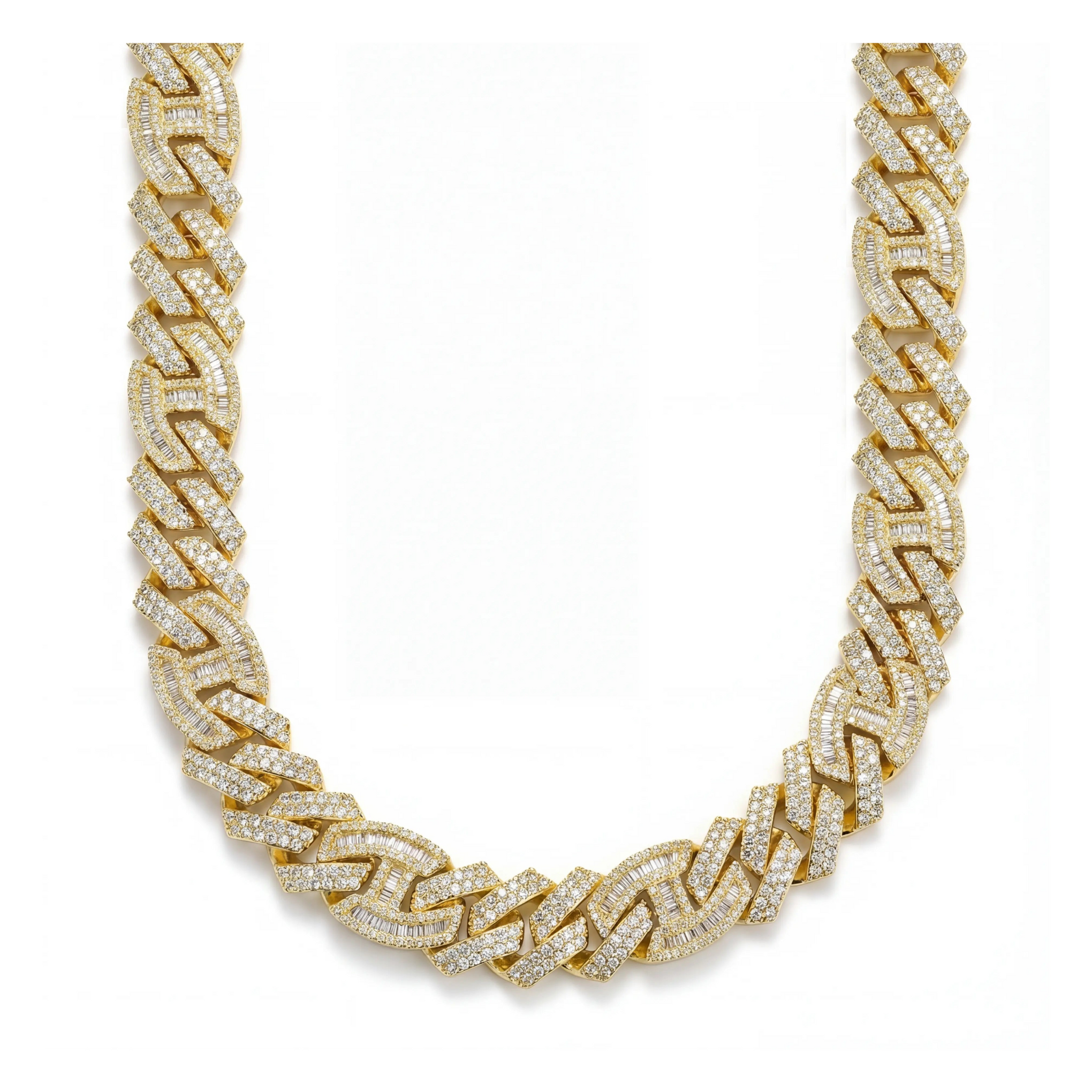 Upgrade your jewelry collection with the bold and luxurious 15MM Nocta Vince Cresta Misto Cuban Chain, designed for those who want maximum shine and premium craftsmanship. This chain blends the iconic Cuban link style with hand-placed baguette stones with round cut 5A CZ stones, giving it a unique, high-end look that stands out instantly.