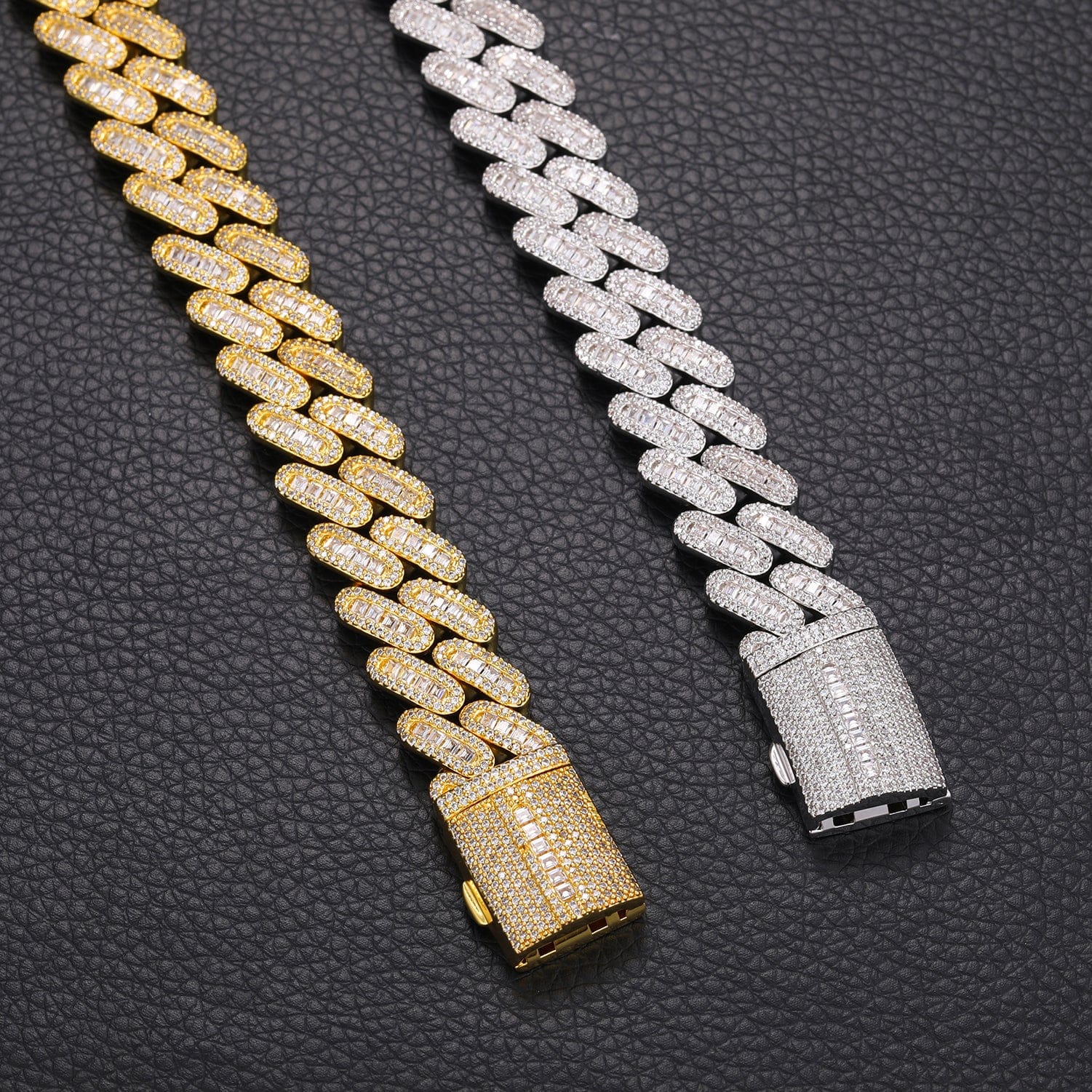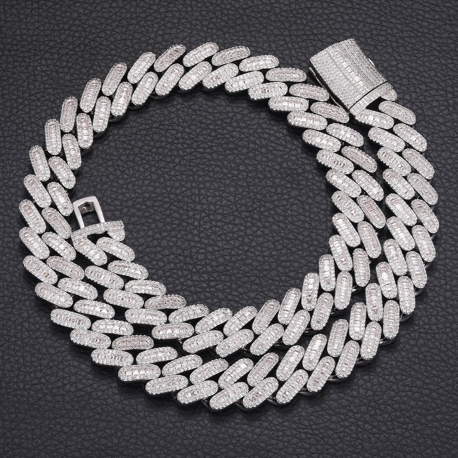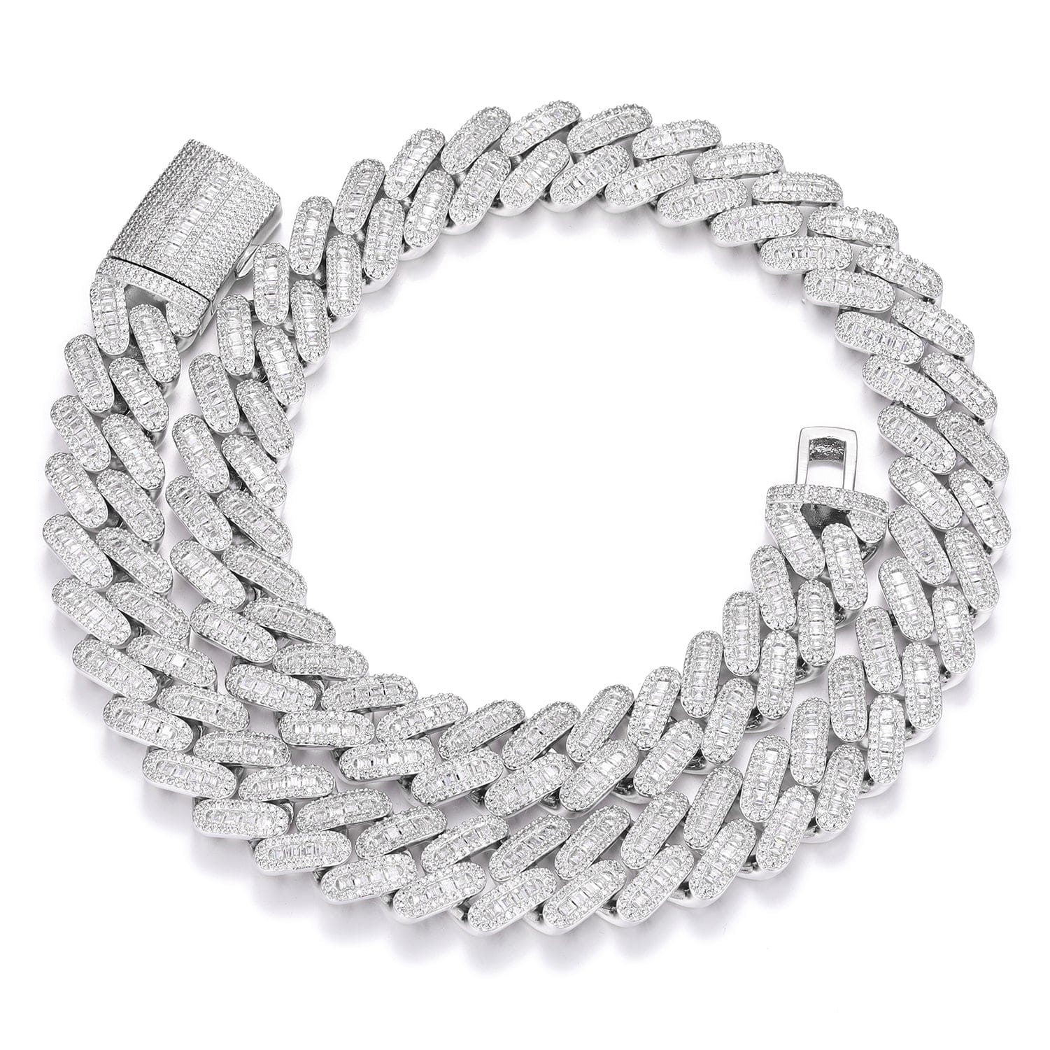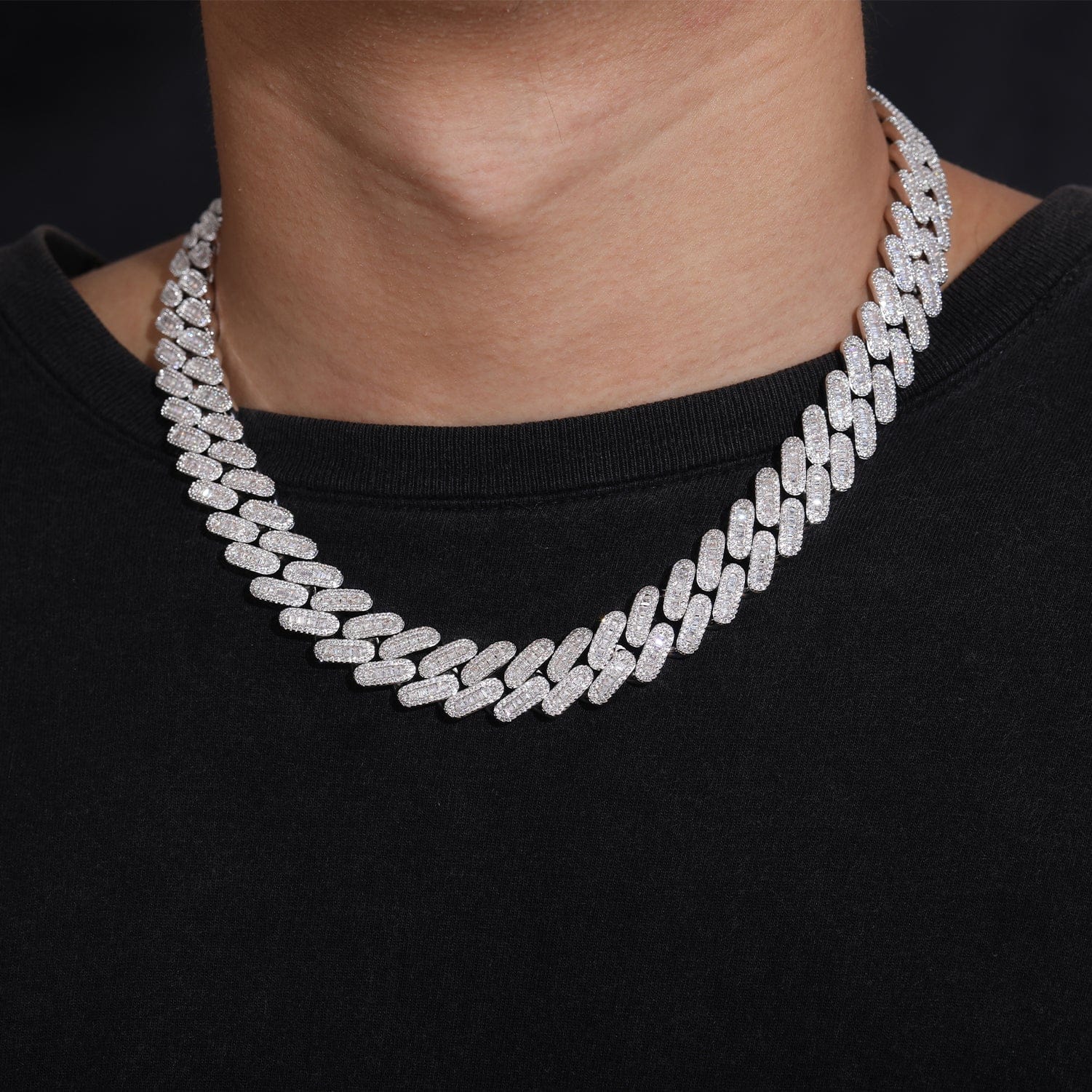 The Nocta Vince Trident 14MM Cuban Chain brings a sculpted, high-end look with its signature hybrid stone layout. Each 14MM link blends faceted edges with a micro-pavé CZ surface, creating a dynamic shine that shifts as the chain moves. The result is a refined, dimensional sparkle that feels premium without looking overly busy.