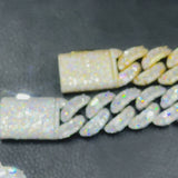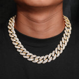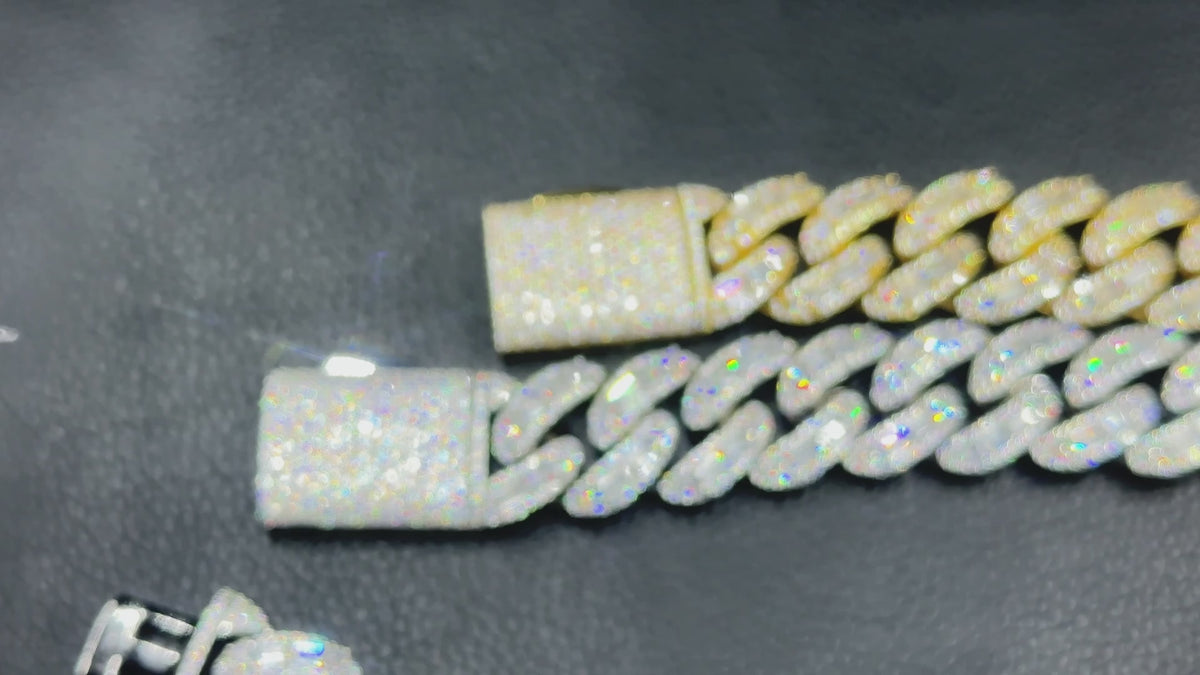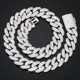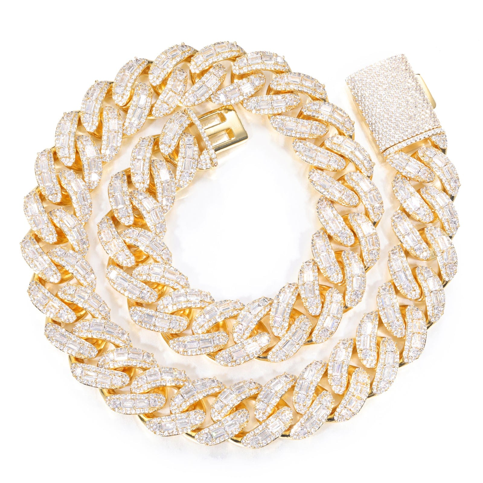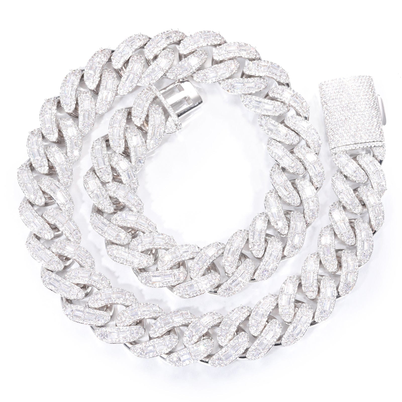 The Nocta Vince Hybrid-Iced Cuban 20MM Chain delivers a powerful, sculpted look with a high-end shine. Each 20MM link is engineered with a hybrid stone layout, blending baguette-style surfaces with precision pavé stonework to create a striking mix of shine and dimension. This unique cut-and-stone combination gives the chain a dynamic sparkle that shifts with every movement.