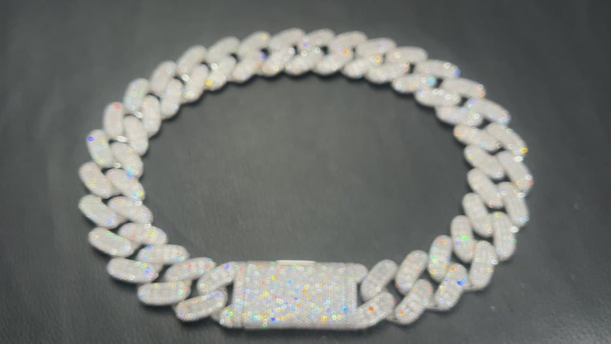 The Nocta Vince Max-Stone Hybrid 22MM Chain is built for maximum shine and bold presence. Featuring oversized 22MM hybrid stone-set links, each link blends faceted detailing with full pavé CZ stones for a bright, multidimensional sparkle. This hybrid design gives the chain a sharper, more modern look compared to traditional Miami Cuban links.