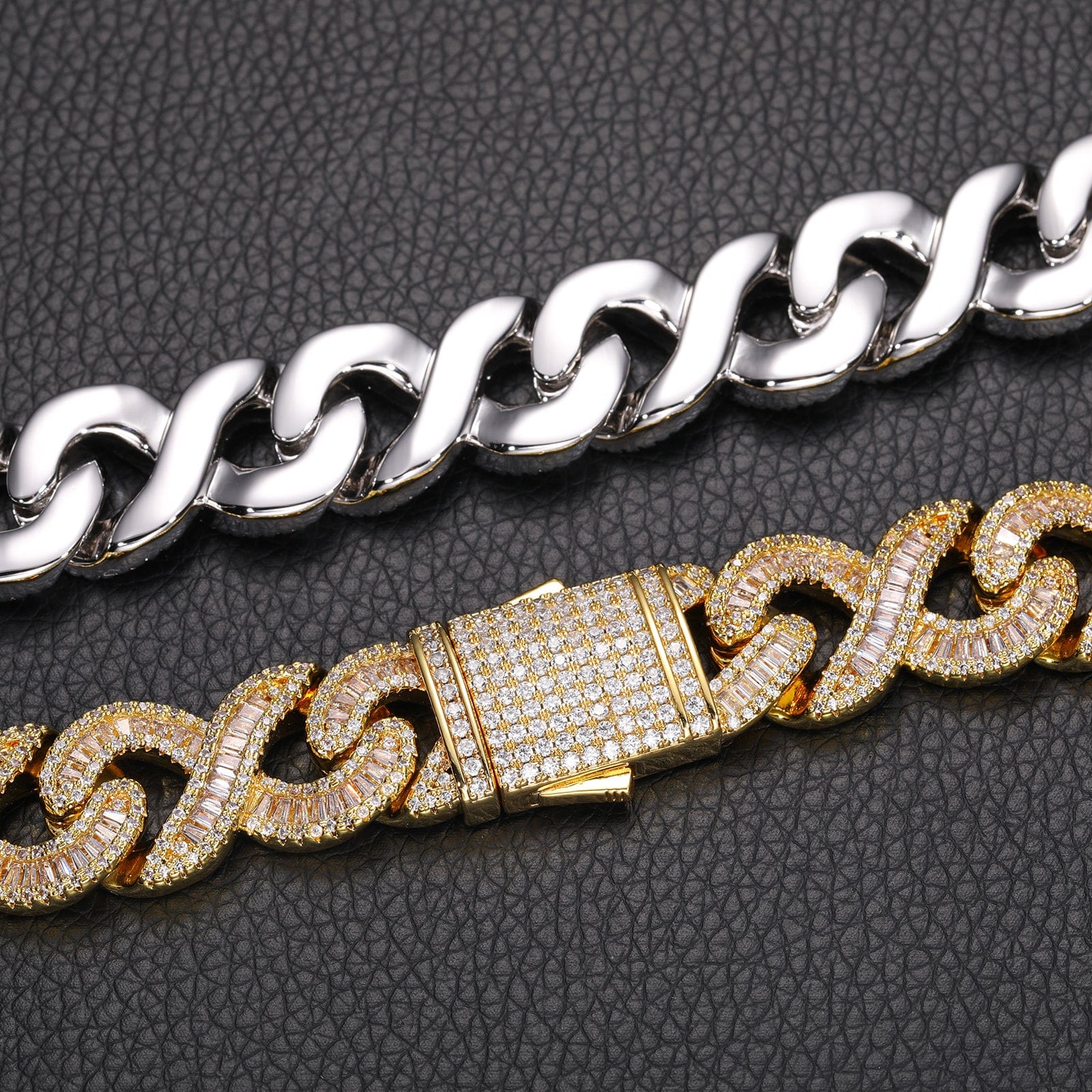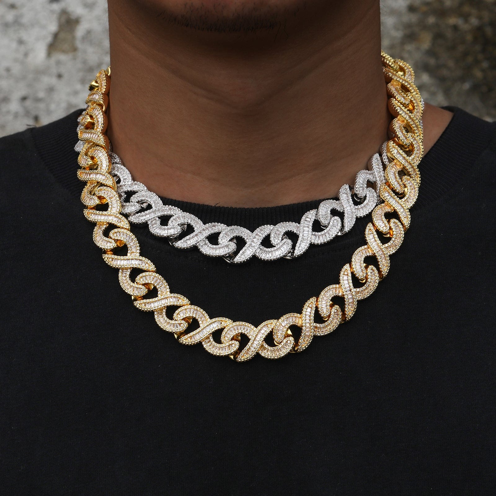 The Nocta Vince Infinite-Link Cuban 16MM Chain puts a modern twist on the classic Cuban link. Designed with a unique infinity-style link pattern, each curved link flows seamlessly into the next, creating a bold, smooth, continuous look. At 16MM, this chain offers the perfect mix of presence and comfort.