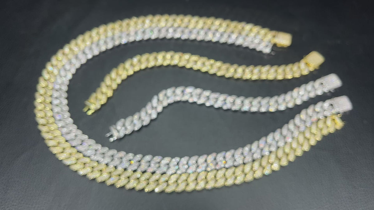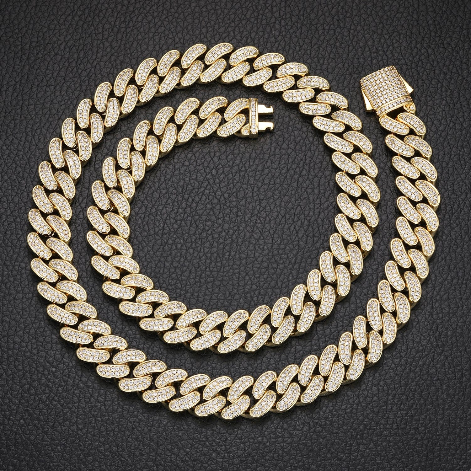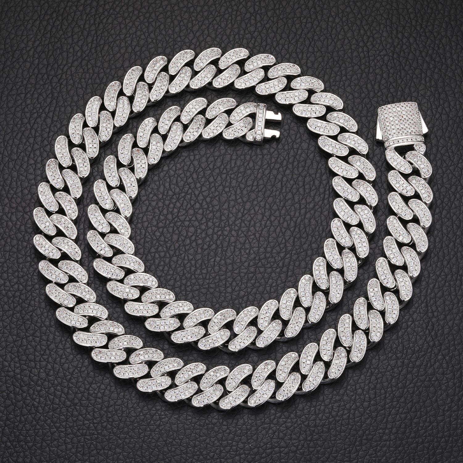 The Nocta Vince 12MM Dual-Row Cuban Chain adds a refined twist to the classic Cuban link with its distinctive two-row micro-bead pavé setting. Instead of a standard stone layout, each link is detailed with tightly arranged micro-bead CZ stones that create a soft, continuous shimmer across the chain.
