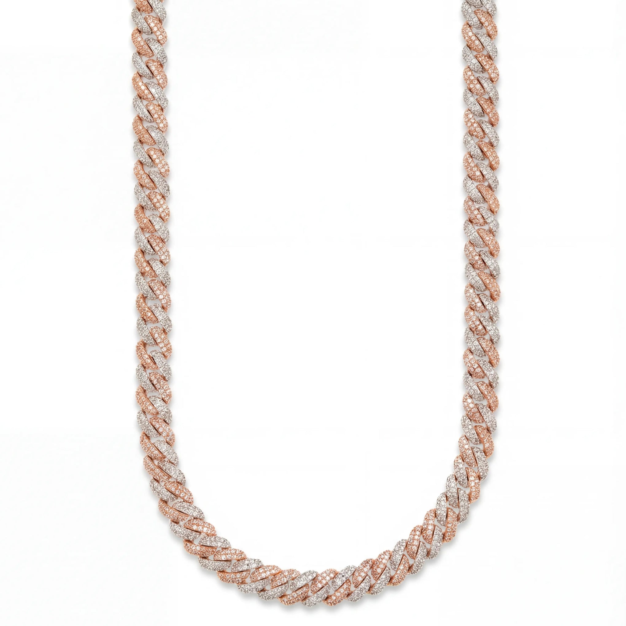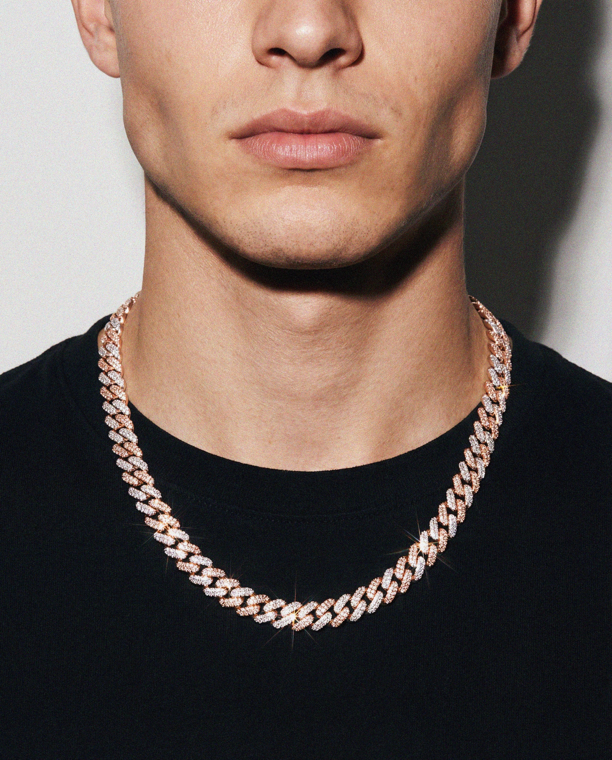 The Nocta Vince 10MM Premier Rose Gold Cuban Chain blends modern style with timeless shine. Featuring a sleek tight-link Miami Cuban design, this piece combines rose gold and silver tones with brilliant CZ stones for a clean, elevated look. Perfect for everyday wear or adding a subtle luxury touch to any fit.