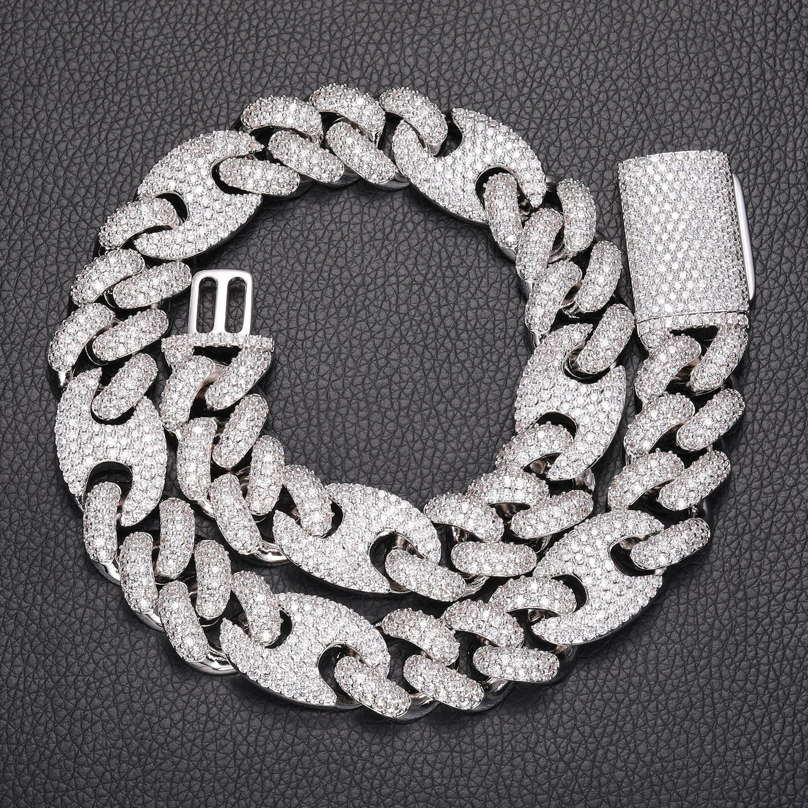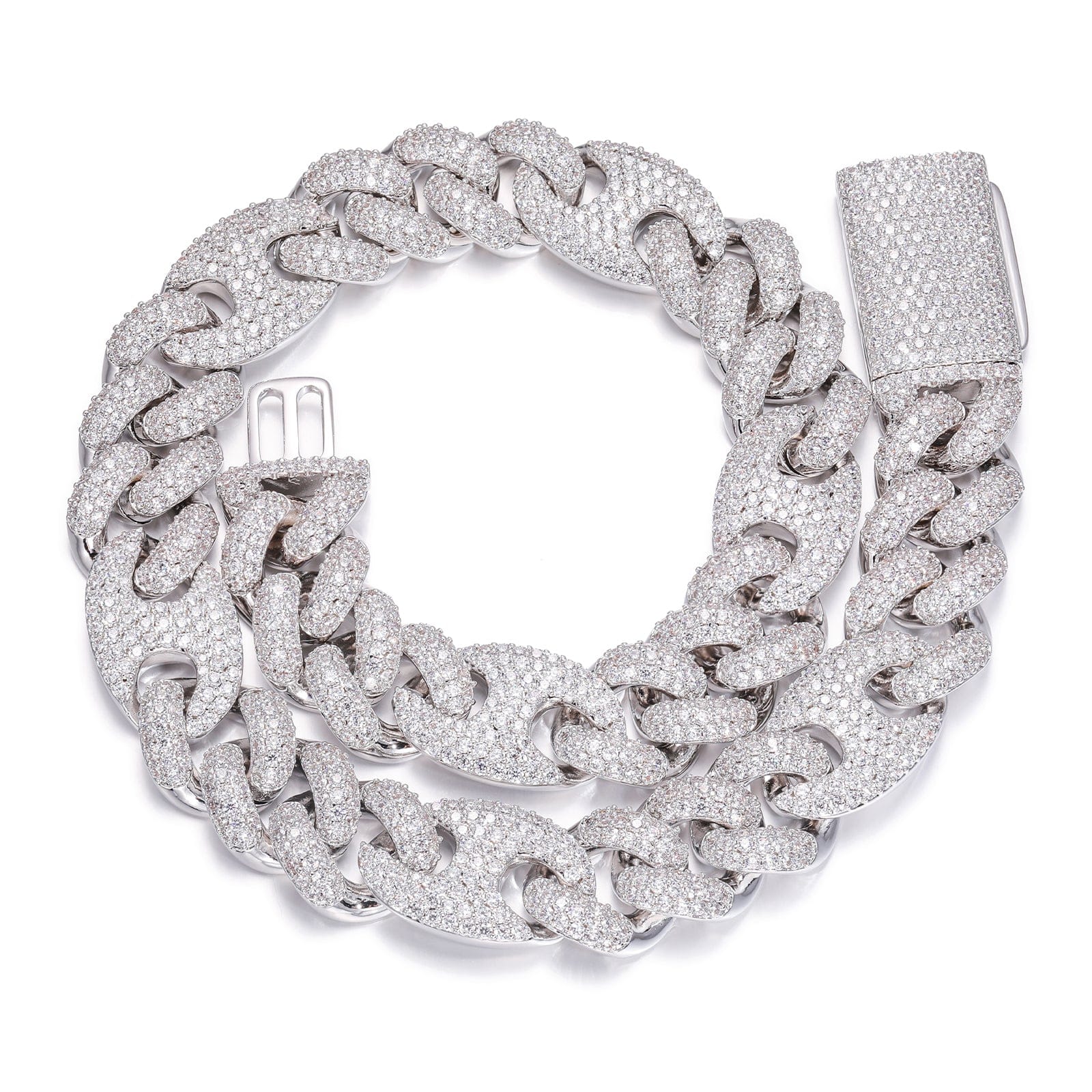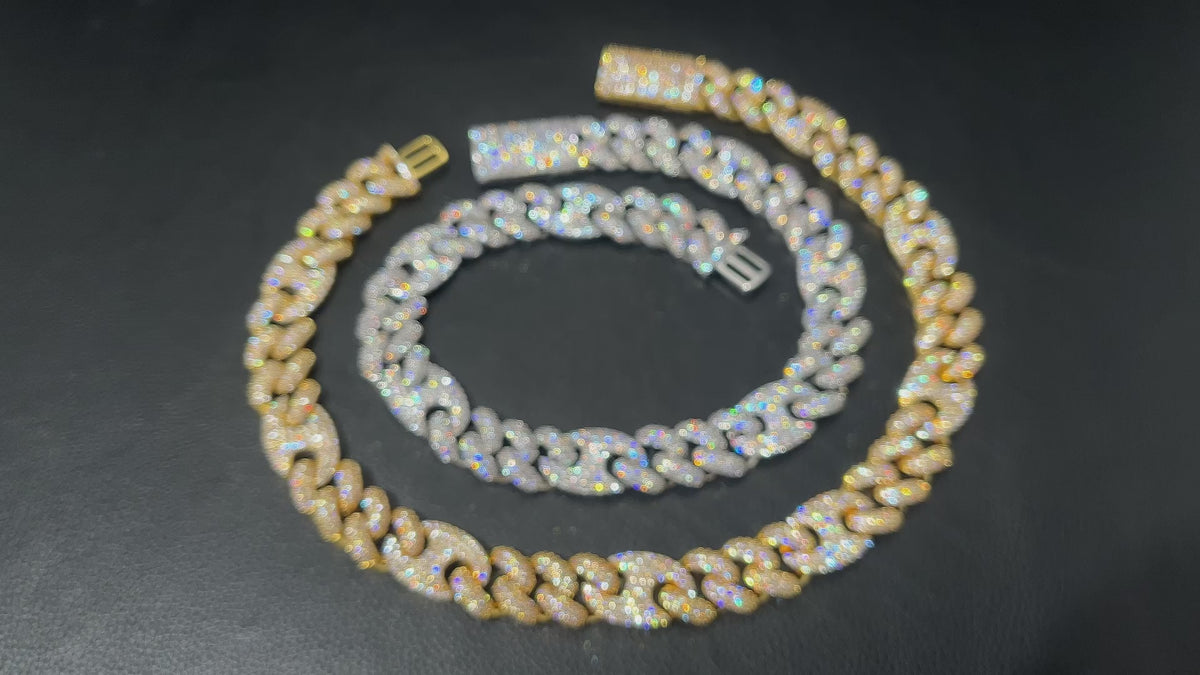 The Nocta Vince Bold-Tube Cuban 18MM Chain puts a fresh twist on the classic Cuban link with its bold, cylindrical tube-style links. Each 18MM link is shaped with rounded edges and a smooth, sculpted profile, giving the chain a modern, high-fashion look that stands out from traditional Cubans.