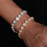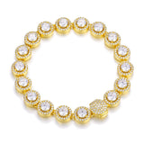 The Nocta Vince Round Halo Tennis Bracelet brings the same radiant halo design to the wrist, giving you a clean, jewelry-grade sparkle from every angle. Each round bezel-set stone is surrounded by a finely detailed micro-pavé halo, adding depth, shine, and a touch of luxury without feeling overly flashy.