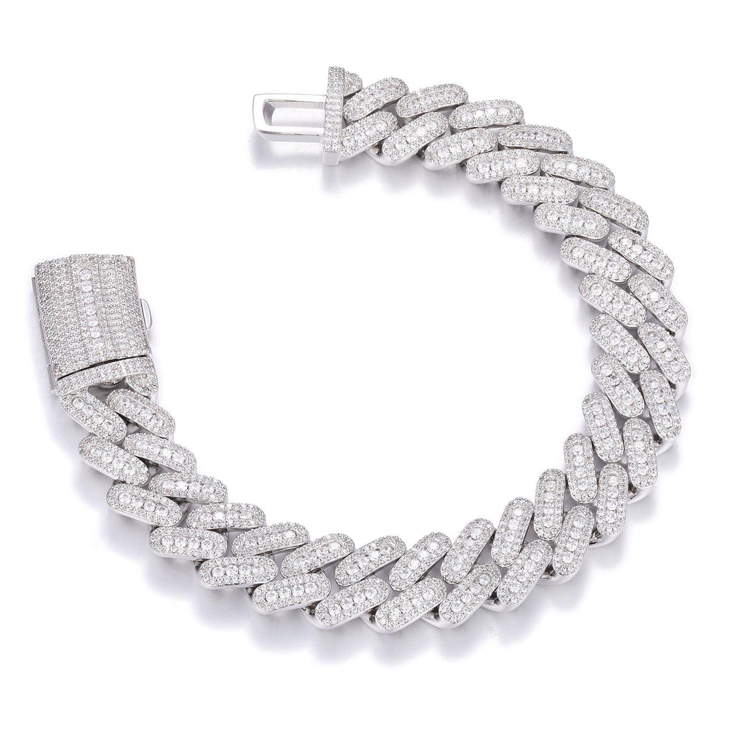 The Nocta Vince Infinito Mariner Bracelet brings the same clean shine to your wrist with its fully iced 14MM links. Each link is lined with micro pavé stones that create a sleek, continuous sparkle without feeling overly flashy. Designed with smooth edges and a solid clasp, this bracelet combines comfort with a crisp, luxury appearance.
