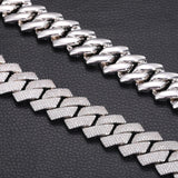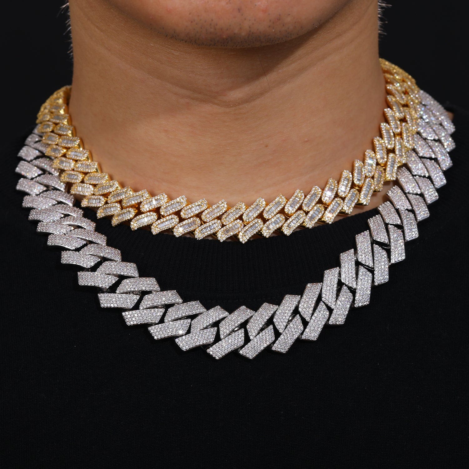 Available in Gold and Silver, this chain delivers a powerful, modern iced-out aesthetic with its sharp prong-set silhouette and heavyweight construction. Whether worn solo for a dominant centerpiece or layered with other chains for added depth, this 20MM prong Cuban is built to leave a lasting impression.